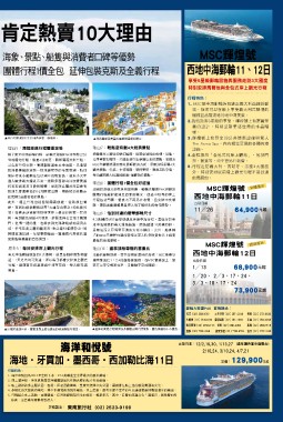 阿瑪菲海岸線,在搭乘郵輪前一覽南義代表性的歷 9.3萬噸的MSC音樂號執航東地中海行程,是航行於東 西地中海郵輪11日
