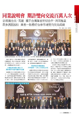 雙邊密切的交流,讓雙方的旅遊市場不斷 者對於推廣泰國商品擁有更多選擇。台 也致力提升,為業者包裝的系列團、
