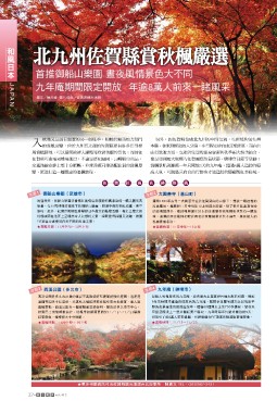 薦賞楓勝地,可以避開擁擠人潮慢慢欣賞美麗的景色;而前往 由行旅遊方面,也能與佐賀的溫泉資源與秋季兩大祭典結合,