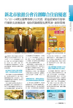 近百家新北市旅館業者合作,聯 出「11/22~24住宿每晚1,122元起」活 形式為切入點,吸引旅客入住,再透過