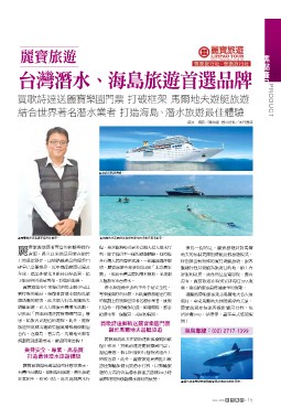 全球,產品多樣化且維持良好品質,給 展」,推廣台灣美麗的潛水寶地,並規劃 務,務必給旅客最舒適奢華的假期。