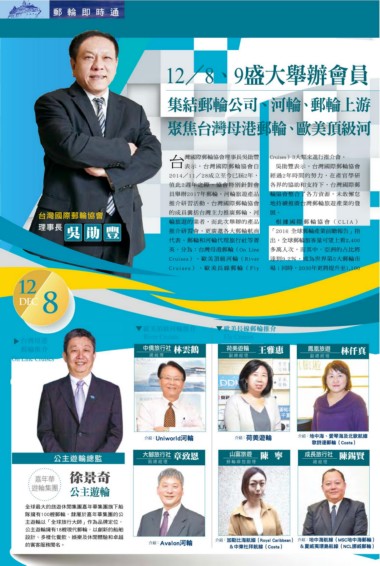 12 員舉辦2017年郵輪、河輪旅遊產品 各界的協助和支持下,台灣國際郵