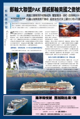 報 郵輪大聯盟PAK憑藉著郵輪旅遊的專業度,繼地中海、阿拉斯加郵輪旅遊後,全新
