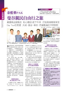 ▲「泰酷樂PAK」由吉帝、澄果、天海、春暉、寶馬、捷利等菁英組成。(左起)春暉旅行社線控藍梃書、澄果旅遊線控經理許 廣大的旅客需求,同時也為同業銷售上