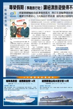 質的旅遊行程來提供市場銷售,也因此 合紐澳的商品選擇,以新興的郵輪搭配