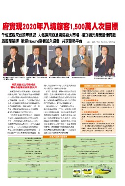 外,拓展其他入境市場的齊頭式發展才 計畫,同時將國民旅遊卡回歸為旅遊用 全台各地獨特的資源,建構專屬台灣的觀光與