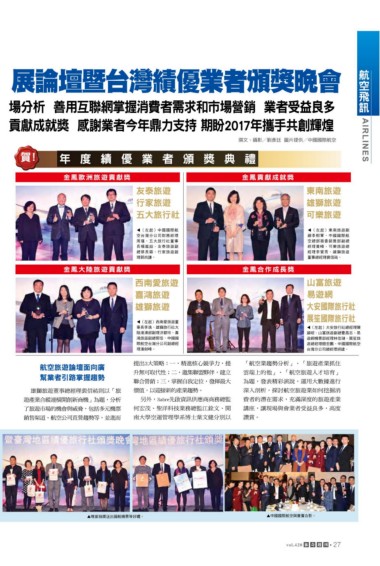 貢獻成就獎 感謝業者今年鼎力支持 期盼2017年攜手共創輝煌 訊
