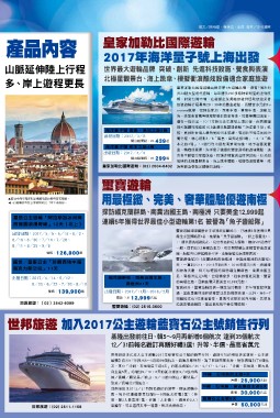 輪預計在2017年推出5~8月的29個航次,銷售反應熱烈,為了回饋同業支持,特別再增加了6個航