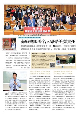 士凱,大方與同學分享前往貴州旅遊的經 情。身為客家人的溫士凱在演講中表示,來 的喀斯特地貌,走進貴州就像走進一幅美麗的