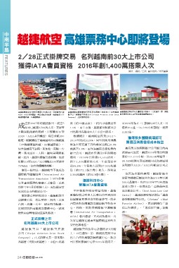 功於今年2月份掛牌上市,成為越南首 榮獲IATA會員資格 500大品牌外,也在2015年TTG年度旅