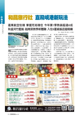 行程,和昌旅行社今年特別取得遠東航 別為4星級經濟行、5星級高檔行,以 田園漫遊和越南菜教學等,帶旅客深度