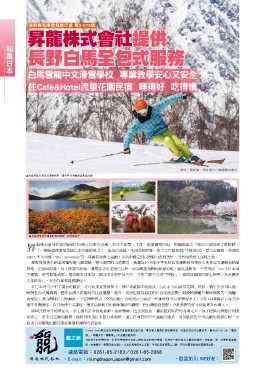 雪連盟」滑雪教練執照,還開辦全日本第一間以中文教學為主的「白馬雪龍中文滑雪學校」,無語言隔閡的細心指導,為台灣客