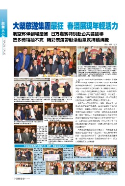 ▲大榮旅遊集團董事長郭文瑞(中)率領(左起)台中分公司總 ▲大榮旅遊集團會長郭榮華(左)特 台灣虎航、日本航空等夥伴皆到場外,日本當地業者