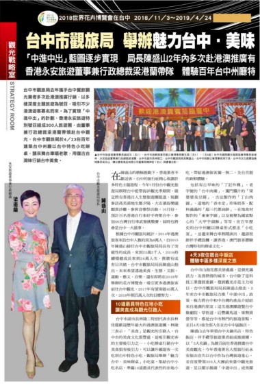 次,2018年朝百萬人次的目標努力。 年來台中市觀旅局力推「中進中出」政