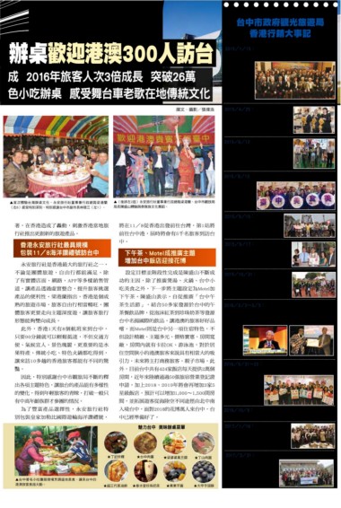 因此,特別感謝台中市觀旅局不斷的釋 星級飯店,預計可以增加1,000~1,500間房 2017/1/16:香港推廣春遊台中