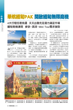 ▲華航緬甸PAK規劃出5、6、7、8天的商品,讓同業能依 勃發展的需求,華航特別攜手和昌、 撰文/王政 圖片提供/本刊圖庫